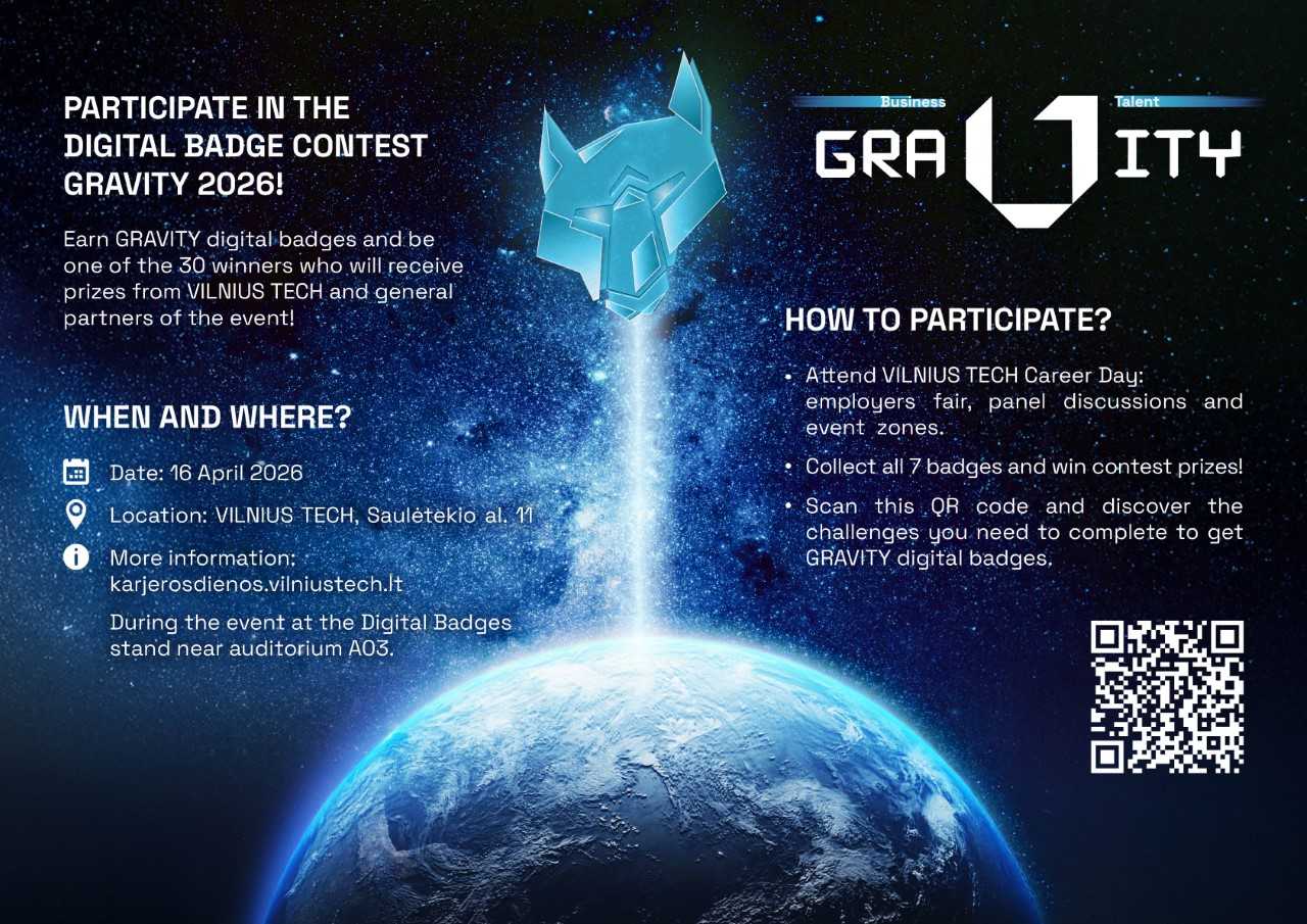 For more information about the contest and attendance recognition contact: badge@vilniustech.lt. On the event day, visit the digital badges stand near the A03 auditorium.